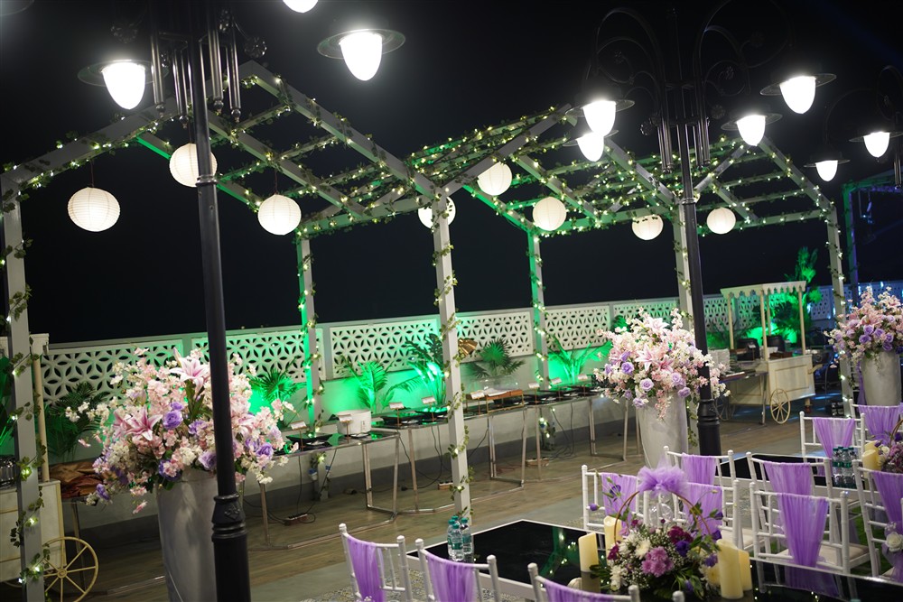 Haldi Theme Decor at Bravura Gold Resort's Alfresco (Rooftop Banquet @ Poolside)